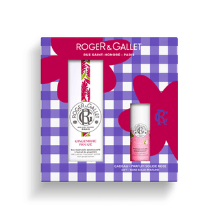 Ce coffret réunit l’Eau Parfumée Gingembre Rouge qui nous fait craquer, et le parfum solide Rose pour un duo floral tendre et poudré !